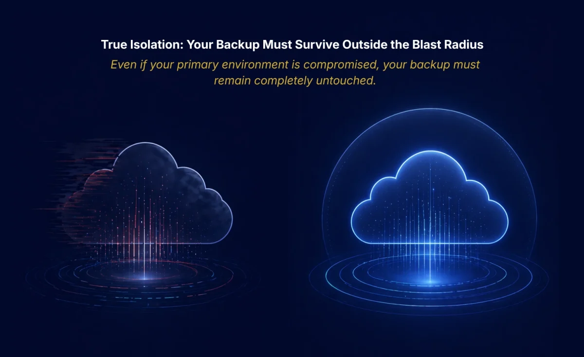 A resilient data factory requires a strict separation of concerns. The fatal flaw in many modern cloud deployments is storing the backup in the same logical blast radius as the primary data. If a threat actor compromises your primary tenant, relying on internal retention policies is an unacceptable risk.